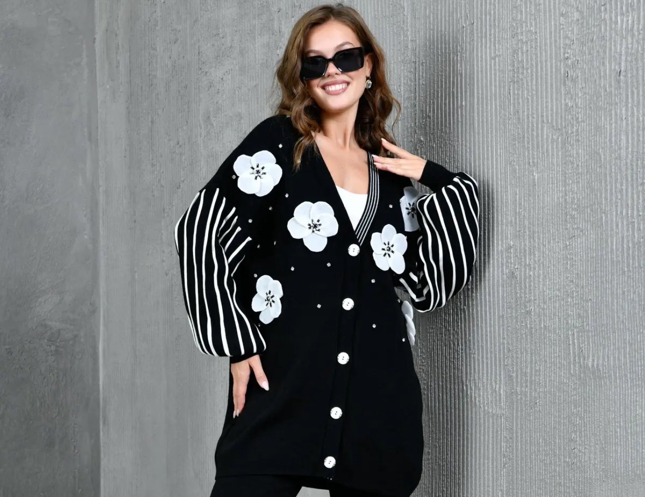 التصميم يأتي بلمسات تطريز بارزة ثلاثية الأبعاد مع تفاصيل مخططة أنيقة تضيف طابعًا عصريًا راقيًا يناسب ذوق المرأة السعودية